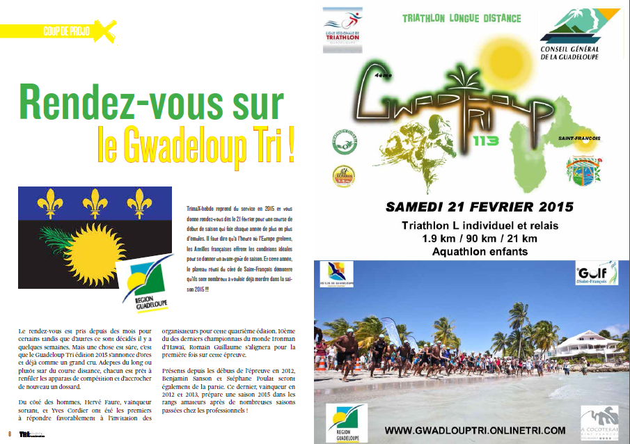 TrimaX-hebdo reprend du service en 2015 et vous donne rendez-vous dès le 21 février pour une course de début de saison qui fait chaque année de plus en plus d’émules. Il faut dire qu’à l’heure où l’Europe grelotte, les Antilles françaises offrent les conditions idéales pour se donner un avant-goût de saison. Et cette année, le plateau réuni du côté de Saint-François démontre qu’ils sont nombreux à vouloir déjà mordre dans la saison 2015 !!!