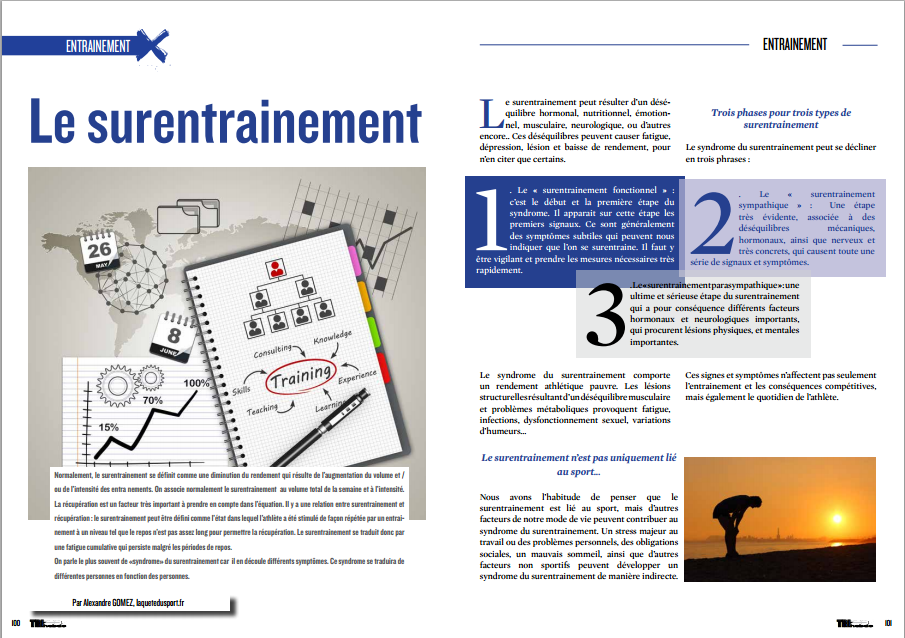 Normalement, le surentrainement se définit comme une diminution du rendement qui résulte de l’augmentation du volume et / ou de l’intensité des entraînements. On associe normalement le surentrainement au volume total de la semaine et à l’intensité. La récupération est un facteur très important à prendre en compte dans l’équation. Il y a une relation entre surentrainement et récupération : le surentrainement peut être défini comme l’état dans lequel l’athlète a été stimulé de façon répétée par un entrainement à un niveau tel que le repos n’est pas assez long pour permettre la récupération. Le surentrainement se traduit donc par une fatigue cumulative qui persiste malgré les périodes de repos. On parle le plus souvent de «syndrome» du surentrainement car il en découle différents symptômes. Ce syndrome se traduira de différentes personnes en fonction des personnes.
