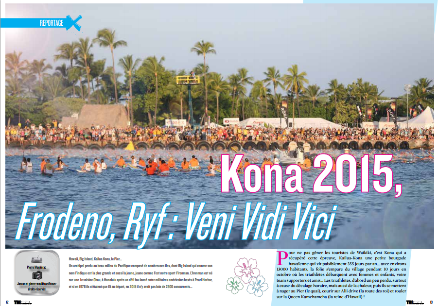 Hawaii, Big Island, Kailua Kona, le Pier… Un archipel perdu au beau milieu du Pacifique composé de nombreuses iles, dont Big Island qui comme son nom l’indique est la plus grande et aussi la jeune, jeune comme l’est notre sport l’Ironman. L’Ironman est né sur une île voisine Ohau, à Honolulu après un défi fou lancé entre militaires américains basés à Pearl Harbor, et si en 1978 ils n’étaient que 15 au départ, en 2015 il n’y avait pas loin de 2500 concurrents…