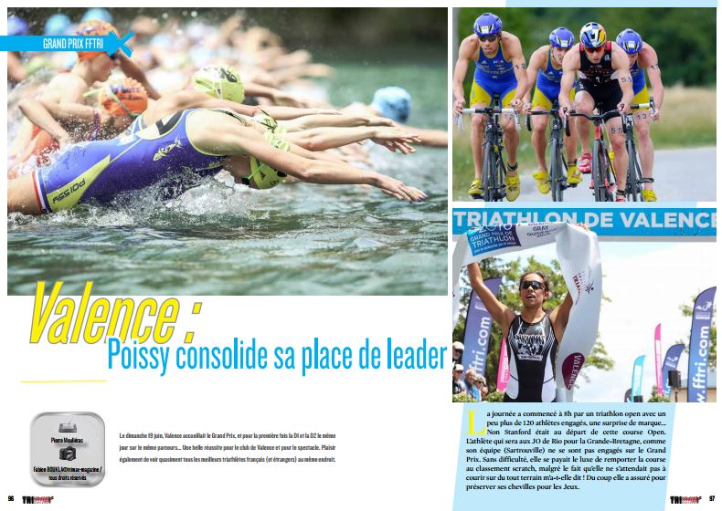 Le dimanche 19 juin, Valence accueillait le Grand Prix, et pour la première fois la D1 et la D2 le même jour sur le même parcours… Une belle réussite pour le club de Valence et pour le spectacle. Plaisir également de voir quasiment tous les meilleurs triathlètes français (et étrangers) au même endroit.