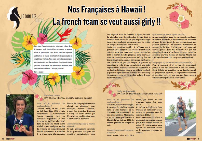 Bravo à nos Françaises présentes cette année à Kona. Avec 16 Françaises sur la ligne de départ cette année, un nouveau record de participation a été établi. Avec deux épreuves qualificatives en France, l’aventure tente de plus en plus de compétitrices tricolores. Nous avons saisi cette occasion pour faire connaissance avec chacune d’entre elles autour de quatre questions… D’horizons et avec des ambitions différentes, elles nous racontent leur Hawaii… Pourquoi pas vous ? Bravo à toutes !