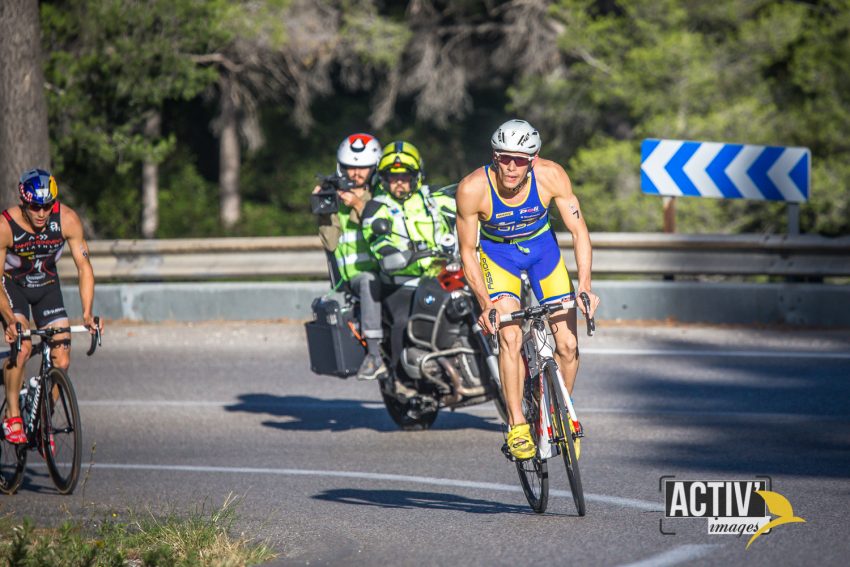 Cassandre Beaugrand et Raoul Shaw étaient les premiers à s’extirper de l’eau pour leur catégorie respective. Si Cassandre avait près de deux minutes de d’avance sur ses poursuivantes, chez les garçons, les favoris restaient groupés derrière Raoul. Et c’est Dorian Coninx qui prenait rapidement les choses en main. Dans son sillage, Sylvain Sudrie, Mathis Magirier, Raoul Shaw ou encore Vincent Luis. Le récent vainqueur de la finale WTS ne semblait pas dans un grand jour tout comme Léo Bergère qui ne parvenait pas à s’exprimer sur un parcours qui pourtant correspond à ses qualités. Quelques kilomètres, il abandonnait la course. Au même moment, Sylvain Sudrie prenait les commandes de la course. Il faut dire que les prolongateurs et la position aéro représentaient un sérieux avantage sur cette course et ont permis au multiple champion de France LD pensionnaire du club local des Sardines triathlon de faire la différence.