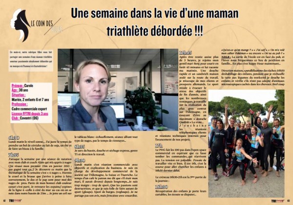 Découvrez dans TrimaX#149 une semaine dans la vie d’une maman triathlète débordée !!! Posted by Alex-TrimaX | dimanche 28 février 2016 | Actualités, News | 0 | Ce mois-ci, notre rubrique filles vous fait partager une semaine d’une maman triathlète amateur passionnée absolument débordée qui ne manque ni d’humour ni d’autodérision !