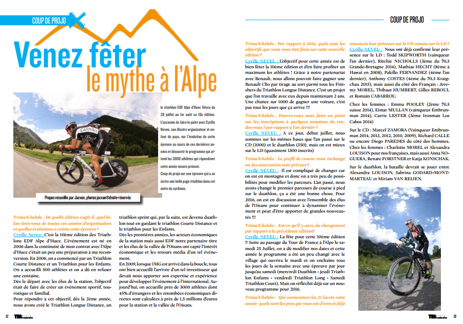 Les objectifs pour cette saison sont de courir 2 IRONMAN, enfin autant de courses dont j’aurais besoin pour me qualifier pour Hawaii, c’est mon but, je vais aller chercher les points. Mais je ne souhaite pas courir énormément de courses. Donc une fois que j’aurais les points, je vais me concentrer sur l’année prochaine avec le Challenge Roth, peut-être les Championnats du Monde ITU puis bien sûr l’IRONMAN Hawaii, cela sera l’objectif majeur. Mais pour le moment, je me concentre sur Vichy et si je réalise une belle course, je suis sûr que je signerais un nouveau contrat avec mon équipe pour l’année suivant. C’est tout pour cette fin de saison.