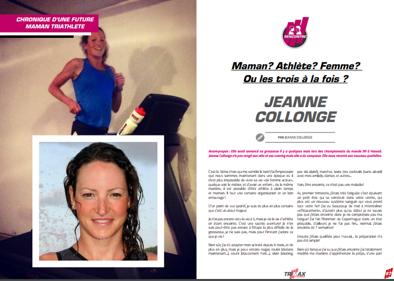 Maman? Athlète? Femme? Ou les trois à la fois ? Jeanne Collonge vous dit tout dans TrimaX#171 Posted by Alex-TrimaX | mardi 20 février 2018 | Actualités, News | 0 | Avant-propos : Elle avait annoncé sa grossesse il y a quelques mois lors des championnats du monde IM à Hawaii. Jeanne Collonge n’a pas rangé son vélo et ses running mais elle a du composer. Elle nous raconte son nouveau quotidien.