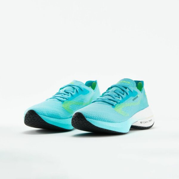 Pour la mousse, Kiprun s’est associé à Arkema, un chimiste français référent sur le marché du running. De cette alliance est née la mousse VFOAM en matériau Pebax®, 20% plus dynamique que les chaussures classiques. Cette mousse pebax® Arkema, combinée à la géométrie de la semelle, vise à offrir un amorti très réactif.