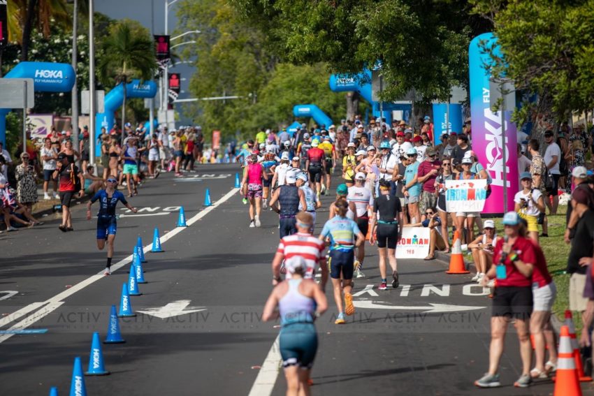 En Ironman, les triathlètes ont des cadences de foulée plus basses, ainsi que des longueurs de foulée plus courtes, également dues à des vitesses de déplacement bien plus basses. Mais l’extension du genou est un critère que les meilleurs ont en commun.