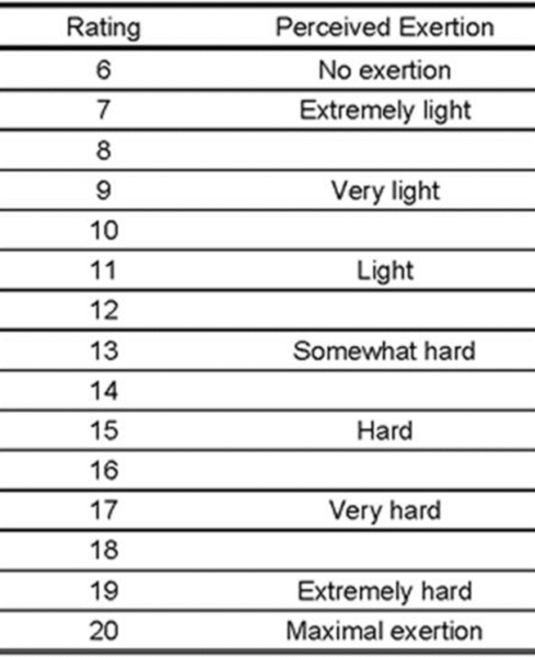Les anglo-saxons utilisent souvent l’échelle de Borg ou RPE (Rate of Perceived Exertion) utilisent souvent l’échelle de Borg ou RPE (Rate of Perceived Exertion) qui permet d’évaluer la difficulté d’un exercice sur une échelle de 6 à 20.