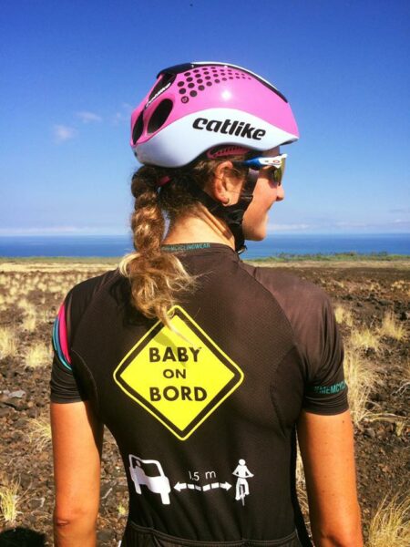J’ai forcément dû adapter mon entraînement lorsque j’ai su que j’étais enceinte. J’ai mis du temps avant de le découvrir, je me préparais pour Hawaï et j’étais très fatiguée sans comprendre pourquoi. Certaines femmes se sentent en forme à ce moment-là, moi non ! Après Kona (que je n’ai pas fini, pour cause ), je me suis enfin sentie bien, j’ai pu nager jusqu’au bout de ma grossesse, faire du home-trainer et courir doucement jusqu’à 6 mois et demi. J’ai très bien vécu ma grossesse, j’ai eu de la chance, tout s’est bien passé !