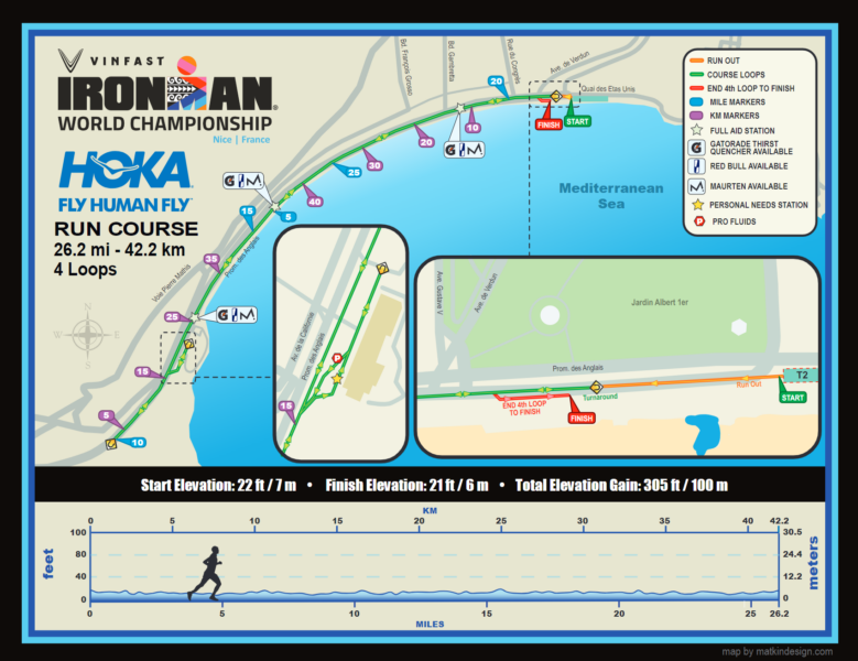 Diane Bertsch, Senior Vice President, World Championship Events, IRONMAN, commente : « Le parcours du Championnat du Monde IRONMAN est un parcours qui offrira une expérience inégalée à nos athlètes, leur permettant de s’imprégner de la culture de la ville hôte, tout en rejoignant une partie de l’histoire du triathlon. Ayant visité à de nombreuses reprise la Ville de Nice, qui a par ailleur déjà accueilli les Championnats du Monde IRONMAN 70.3 en 2019, je peux affirmer à quel point nous avons hâte que les athlètes fassent l’expérience de ce parcours.«