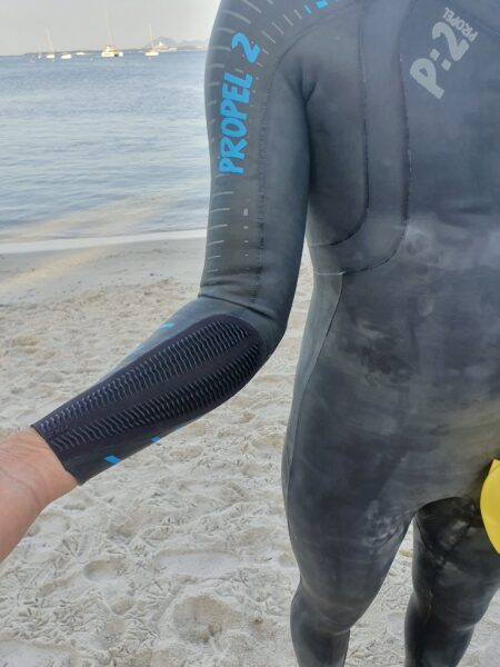 À l’enfilage, la Propel 2 ne pose aucun souci et celui-ci se fait tout aussi rapidement que sans effort. C’est ici que l’on constate année après année les évolutions atteintes par le néoprène : de plus en plus flexible et étirable. La contrepartie est qu’il vous faut être précautionneux lors de l’enfilage. Ce n’est pas que le néoprène est plus fragile (sa flexibilité le rendant très résistant à l’étirement), mais sa finesse sur certaines zones le rend fragile à la perforation, notamment par les ongles.