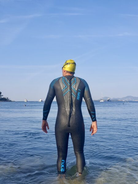 Enfin, 2XU n’oublie pas qu’une combinaison de triathlon se doit d’être aussi rapide pendant la natation qu’à la transition. Retirer la Propel 2 n’est donc qu’une formalité surtout au niveau des jambes avec une coupe optimisée à cet effet. Le passage des bras est un peu moins conciliant (afin d’éviter tout mouvement d’eau lors de la nage), mais vous n’aurez aucun souci pour les retirer lors de votre footing vers T1.