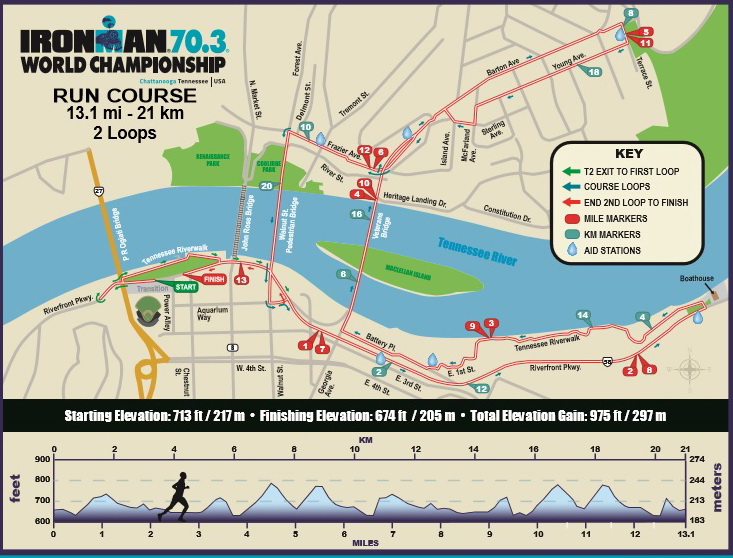 La course à pied en 2 boucles au bord de la rivière Tennessee, avec un dénivelé de quasi 300m une succession de côtes assez raide avec au total 10 bosses qui viendront achever les organismes déjà bien fatigués.