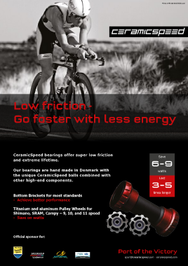 Photo credit @trimaxhebdo.com Low friction - Go faster with less energy CeramicSpeed bearings offer super low friction Save and extreme lifetime. 6-9 Our bearings are hand made in Denmark with watts the unique CeramicSpeed balls combined with other high-end components. Last 3-5 times longer Bottom Brackets for most standards - Achieve better performance Titanium and aluminum Pulley Wheels for Shimano, SRAM, Campy – 9, 10, and 11 speed - Save on watts Offcial sponsor for: Part of the Victory [email protected] ceramicspeed.com · CeramicSpeed_ann_LowFriction_210x297mm.indd 1 06/05/14 13.50