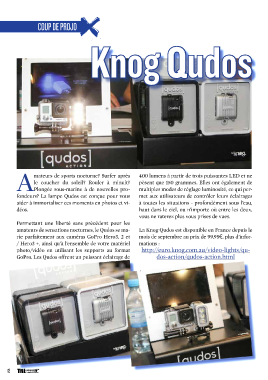 COUP DE PROJO Knog Qudos mateurs de sports nocturne? Surfer après 400 lumens à partir de trois puissantes LED et ne le coucher du soleil? Rouler à minuit? pèsent que 150 grammes. Elles ont également de APlongée sous-marine à de nouvelles pro- multiples modes de réglage luminosité, ce qui per- fondeurs? La lampe Qudos est conçue pour vous met aux utilisateurs de contrôler leurs éclairages aider à immortaliser ces moments en photos et vi- à toutes les situations - profondément sous l’eau, déos. haut dans le ciel, ou n’importe où entre les deux, vous ne raterez plus vous prises de vues. Permettant une liberté sans précédent pour les amateurs de sensations nocturnes, le Qudos se ma- La Knog Qudos est disponible en France depuis le rie parfaitement aux caméras GoPro Hero3, 2 et mois de septembre au prix de 99,95€, plus d’infor- / Hero3 +, ainsi qu’à l’ensemble de votre matériel mations : photo/vidéo en utilisant les supports au format http://euro.knog.com.au/video-lights/qu- GoPro. Les Qudos offrent un puissant éclairage de dos-action/qudos-action.html 12 TRIhebdo
