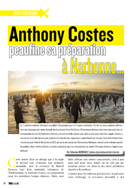 SERIE EXTREMEMAN Anthony Costes peaufine sa préparation à Narbonne… e Le 7 septembre dernier, Narbonne accueillait l’Extrememan pour la 3 année consécutive. Fort de ses deux premières éditions, avec des vainqueurs de renom, Frederik Van Lierde puis Victor Del Corral, l’Extrememan Narbonne fait désormais partie des in- contournables du mois de Septembre. Certains y verront une belle épreuve pour clôturer une saison déjà bien remplie, d’autres, y verront une très belle épreuve pour préparer des objectifs plus importants, comme Hawaii par exemple. Cela avait d’ailleurs bien fonctionné pour Frederik Van Lierde en 2012, qui après son succès sur l’Extrememan Narbonne, montait sur la troisième marche du podium à Kona. Anthony Costes en pleine préparation pour les championnats du monde ITU longue distance s’impose sans difficulté. Par Sébastien RODRIGUEZ, photos organisation@droits-réservés ette année 2014 ne déroge pas à la règle faire offense aux autres concurrents, c’est à peu et devrait voir s’imposer une pointure près tout pour cette année, on ne voit pas qui Cmondiale, avec la présence de Marcel pourrait priver ces deux-là des deux premières Zamora, tout frais quintuple vainqueur de marches du podium... l’Embrunman, et Anthony Costes, en préparation Comme pour les éditions précédentes, le parcours pour les mondiaux longue distance. Mais, sans reste inchangé, et s’annonce favorable à des 48 TRIhebdo