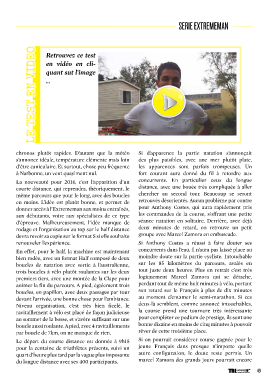 SERIE EXTREMEMAN LE TEST EN VIDEO Retrouvez ce test en vidéo en cli- quant sut l’image ... chronos plutôt rapides. D’autant que la météo Si d’apparence la partie natation s’annonçait s’annonce idéale, température clémente mais loin des plus paisibles, avec une mer plutôt plate, d’être caniculaire. Et surtout, chose peu fréquente les apparences sont parfois trompeuses. Un à Narbonne, un vent quasiment nul. fort courant aura donné du fil à retordre aux La nouveauté pour 2014, c’est l’apparition d’un concurrents. En particulier ceux du longue courte distance, qui reprendra, théoriquement, le distance, avec une bouée très compliquée à aller même parcours que pour le long, avec des boucles chercher au second tour. Beaucoup se seront en moins. L’idée est plutôt bonne, et permet de retrouvés désorientés. Aucun problème par contre donner accès à l’Extrememan aux moins entraînés, pour Anthony Costes, qui aura rapidement pris aux débutants, voire aux spécialistes de ce type les commandes de la course, s’offrant une petite d’épreuve. Malheureusement, l’idée manque de séance natation en solitaire. Derrière, avec déjà rodage et l’organisation au top sur le half distance deux minutes de retard, on retrouve un petit devra revoir sa copie sur le format S si elle souhaite groupe avec Marcel Zamora en embuscade. renouveler l’expérience. Si Anthony Costes a réussi à faire douter ses En effet, pour le half, la machine est maintenant concurrents dans l’eau, il n’aura pas laissé place au bien rodée, avec un format Half composé de deux moindre doute sur la partie cycliste. Intouchable boucles de natation avec sortie à l’australienne, sur les 85 kilomètres du parcours, avalés en trois boucles à vélo plutôt roulantes sur les deux tout juste deux heures. Plus en retrait c’est très premiers tiers, avec une montée de la Clape pour logiquement Marcel Zamora qui se détache, animer la fin du parcours. A pied, également trois perdant tout de même huit minutes à vélo, portant boucles, en papillon, avec deux passages par tour son retard sur le Français à plus de dix minutes devant l’arrivée, une bonne chose pour l’ambiance. au moment d’entamer le semi-marathon. Si ces Niveau organisation, c’est très bien ficelé, le deux-là semblent, comme annoncé intouchables, ravitaillement à vélo est placé de façon judicieuse la course prend une tournure très intéressante au sommet de la bosse, et s’avère suffisant sur une pour compléter ce podium de prestige, ils sont une boucle aussi roulante. A pied, avec 4 ravitaillements bonne dizaine en moins de cinq minutes à pouvoir par boucle de 7km, on ne manque de rien. rêver de cette troisième place. Le départ du courte distance est donnée à 9h15 Si on pourrait considérer course gagnée pour le pour la centaine de triathlètes présents, suivi un jeune Français dans presque n’importe quelle quart d’heure plus tard par la vague plus imposante autre configuration, le doute reste permis. Un du longue distance avec ses 400 participants. marcel Zamora des grands jours pourrait encore 49 TRIhebdo