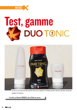 MATERIEL Test, gamme Ce mois-ci, nous avons testé des nouveaux venus dans le monde de la diététique sportive, découvrez duo Tonic, des produits pratiques et écologiques. Test réalisé par Sébastien RODRIGUEZ, photos SR@droits-réservés 66 TRIhebdo