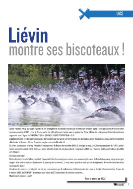UNSS Liévin montre ses biscoteaux ! Départ du triathlon au format S Après PUERTO RICO, qui avait organisé le 1er championnat du monde scolaire de triathlon en octobre 2013 - où la délégation française était revenue couverte d’OR ! , c’est la France qui a été officiellement choisie pour organiser la 2ème édition de cette compétition internationale organisée sous l’égide de l’INTERNATIONAL SCHOOL SPORT FÉDÉRATION -I.S.F- L’implantation de ce triathlon est prévue à Versailles le 30 mai 2015 sur le très beau site de la pièce d’eau des Suisses. Dans cette perspective alléchante, la France a décidé de mettre en place un véritable sélectif. En effet, au cours du briefing du dernier championnat de France de triathlon UNSS à Xonrupt en mai 2014, les responsables de l’UNSS préci- saient aux professeurs d’EPS de lycées qu’un sélectif serait mis en place dés le 7 septembre 2014 sur l’épreuve du 25ème triathlon de JOUE LES TOURS ! Avis aux amateurs ! Cette décision n’avait d’ailleurs pas fait l’unanimité chez les enseignants concernés, notamment à cause de la date beaucoup trop précoce par rapport à la rentrée scolaire (seulement 6 jours après la rentrée...), mais aussi quand on sait que ce championnat du monde aura lieu dans seulement 9 mois ! Résultats des courses, ce sélectif n’a mis en concurrence que 5 malheureux établissements alors que le dernier championnat de France de triathlon UNSS de XONRUPT avait réuni pas moins de 33 lycées dont 10 sections sportives... Maintenant place au sport ! Texte et photos par IBIZA 7 TRIhebdo