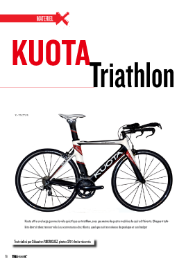 MATERIEL KUOTA Triathlon K-FACTOR Kuota offre une large gamme de vélo spécifique au triathlon, avec pas moins de quatre modèles de cadre différents. Chaque triath- lète devrait donc trouver vélo à sa convenance chez Kuota, quel que soit son niveau de pratique et son budget Test réalisé par Sébastien RODRIGUEZ, photos SR©droits-réservés 76 TRIhebdo