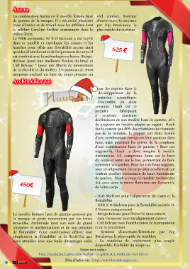 Axena La combinaison Axena est le modèle femme haut réel confort. Système de gamme de la marque. Il a nécessité plusieurs d’ouverture/fermeture mois d’études et de travail avec les athlètes dont par Zip Breakaway, le la célèbre Caroline Steffen surnommée dans le plus rapide du triathlon milieu Xena. Le NBR composite 39 X-O skeleton a été repris dans ce modèle et enveloppe les cuisses et les hanches pour offrir une flottabilité accrue ainsi 625 € qu’aider à l’amélioration de l’alignement du corps. Il est combiné avec la technologie exclusive Biceps- Release (pour une meilleure flexion du bras) et Calf Release ™ (pour une liberté de mouvement de la cheville et du mollet). Un panneau de 3mm néoprène exclusif en haut du corps procure un Archimèdes 3:5 Huub par les experts dans le développement de la scientifique. natation Disponible en deux versions. Huub est le premier fabriquant à proposer plusieurs déclinaisons de son modèle haut de gamme, afin de proposer un modèle adapté au nageur. Huub fait le constat que 80% des triathlètes ne viennent pas de la natation, la plupart ont donc besoin d’une combinaison corrigeant leur position dans l’eau, mais pourquoi les priver de la souplesse d’une combinaison haut de gamme ? Pour ces nageurs-là, Huub a donc imaginé le modèle Archimèdes 3:5, comprenez 3mm sur le haut du corps et 5mm sur le bas, permettant de faire remonter vos jambes. Pour les très bons nageurs, avec un alignement du corps déjà excellent et qui veulent profiter pleinement de leurs battements de jambes, Huub a conçu le modèle Archimèdes 450€ 4:4, avec donc la même flottaison sur l’ensemble de votre corps. - X-O Skeleton pour l’alignement du corps et la flottabilité - NBR X-O Skeleton pour la flottabilité assistée (3: 5 Version uniquement) Le modèle homme haut de gamme proposé par - Biceps Release pour libérer le mouvement la marque et porté notamment par les frères - Arm Crossover pour un alignement correct Brownlee. Archimède tient son nom du grand - Calf Release pour l’amélioration de la propulsion physicien et mathématicien et de son principe et de la circulation de flottabilité. Cette combinaison délivre tout - Système d’ouverture/fermeture par Zip simplement la flottabilité et la flexibilité que Breakaway, le plus rapide du triathlon vous attendez avec une foule d’avantages créés - Le matériau de revêtement plus souple disponible, flexibilité du néoprène Notre test vidéo : http://youtu.be/GaS1eQn5INo?list=UUplOG3GL3mRL6K-Nr4I5VyA Plus d’infos sur : http://www.huubdesign.com 44 TRIhebdo