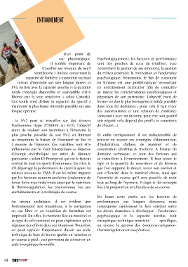la thermorégulation, les phénomènes liés aux liés à la préparation et à l’analyse de sa course.