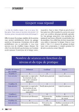 Nombre de séances Débutant Confirmé Expert