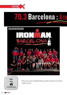 FOCUS RACE 70.3 Barcelona : A race always striving for the best IRONMAN BCN STAFFEurope Jacvan We’ve met the race director of Ironman 70.3 Barcelona, Jordi Perez. You only have a few weeks left to register for this race ! Ironman@droits-réservés 10