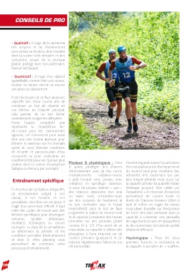 mentales, techniques ou encore intensités sur des périodes plutôt de nage (surtout avec les plaquettes)