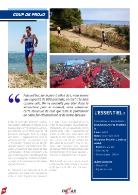 d’arrivée pour les voir. L’idée est de pro- ment, mais conserver cette structure • Natation : 2,2 km