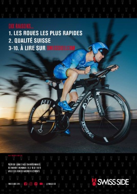 DIX RAISONS... 1. LES ROUES LES PLUS RAPIDES 2. QUALITÉ SUISSE 3-10. À LIRE SUR SWISSSIDE.COM PHOTO: MARCEL HILGER PATRICK LANGE AUX CHAMPIONNATS DU MONDE IRONMAN 70.3 NICE 2019 AVEC LES ROUES HADRON ULTIMATE SWISSSIDE.COM @SWISSSIDE 83
