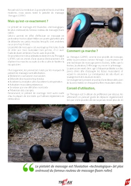 • Accélérer la circulation afin d’accélérer la récupération de la zone traitée en choquant la fibre musculaire ciblée.