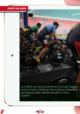 PHOTO DU MOIS Le triathlon 2.0, issu du confinement. La Super League a encore innové le 23/08 avec l’Arena Games à Rotterdam, des épreuves hyper intenses réalisées en indoor. Explosif ! 10 10
