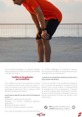 sommeil, l’état psychologique, les adjuvants (massage, une “fenêtre métabolique de récupération” quelques