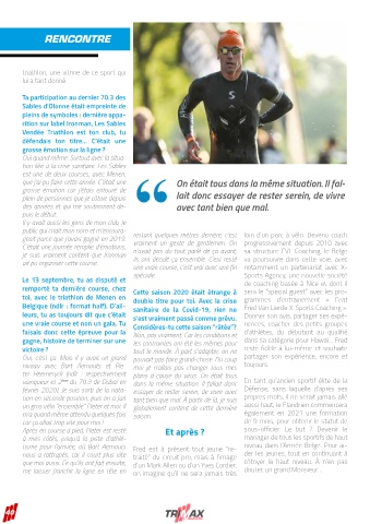 Belgique (ndlr : format half). D’ail- sanitaire de la Covid-19, rien ne Fred Van Lierde X-Sports Coaching ».