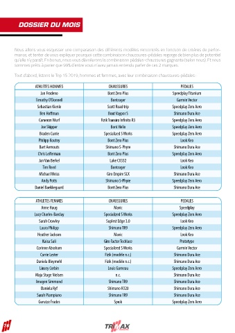 Tout d’abord, listons le Top 15 2019, hommes et femmes, avec leur combinaison chaussures-pédales :
