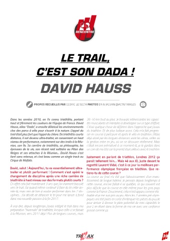 David, salut ! Aujourd’hui, tu es essentiellement ultra- formance olympique française en triathlon. Que re-