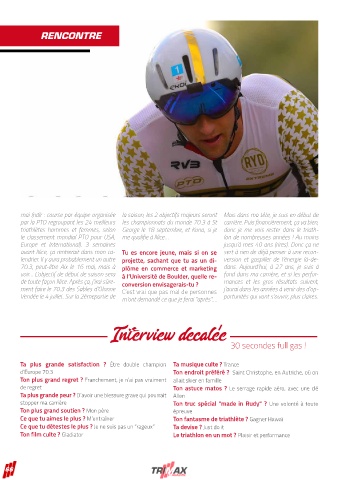 Ton film culte ? Gladiator Le triathlon en un mot ? Plaisir et performance