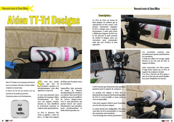 Alden Tri-TT Designs est une compagnie américaine du nom de son fondateur, Glen Alden, lui-même triathlète et ingénieur en concept design. Ce mois-ci, une fois n’est pas coutume, je me suis concentré sur des produits qui permettent d’économiser quelques watts d’aérodynamisme…