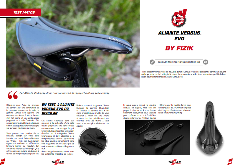 Fizik a récemment dévoilé sa nouvelle gamme versus evo qui se positionne comme un savant mélange entre confort et légèreté réunis dans une même selle. Nous avons donc profité de l’occasion pour tester le modèle Aliante versus evo.