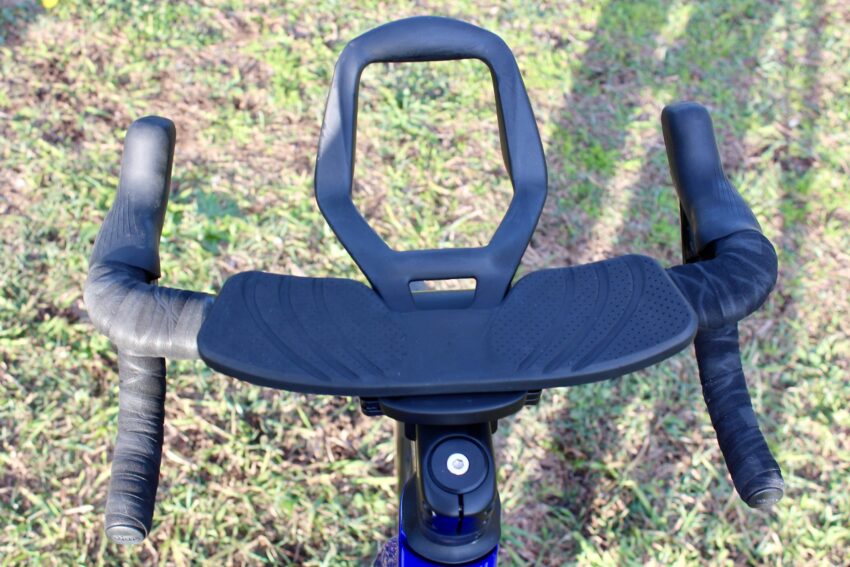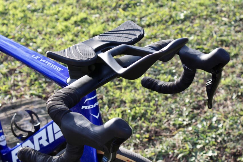 Enfin, comment ne pas finir ce test sans mentionner à nouveau cet astucieux prolongateur. Celui-ci vient s’installer sur la potence en quelques minutes, de façon astucieuse, sans dénaturer l’esthétique du vélo. Même chose au démontage, celui-ci s’enlève tout aussi rapidement et n’aura laissé aucune trace d’usure sur le cockpit. Merci Adris d’avoir pensé à nous les triathlètes !