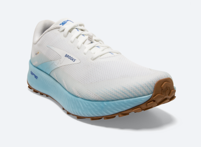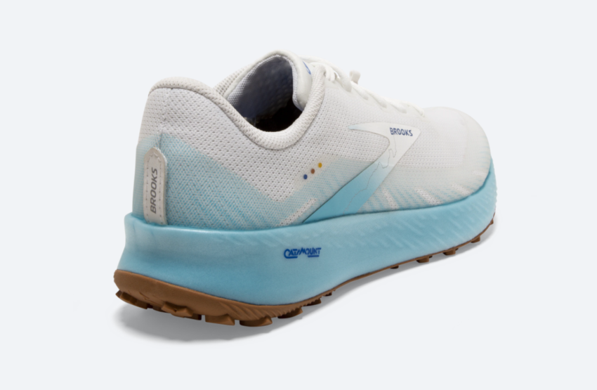 Gros coup de marketing ou innovation majeure ? Brooks a choisi de se démarquer totalement de ce qui existe en proposant une chaussure de couleur blanche pour le trail. Le modèle existe dans d’autres couleurs mais cette couleur blanche brise clairement les codes ! La marque américaine souhaite en proposant cette couleur mettre à contribution le coureur pour que ce soit LUI (ou ELLE) qui puisse raconter son histoire au travers des marques sur les chaussures . Pour pousser encore la personnalisation, trois lignes vierges se distinguent sur la chaussure avec en titre « My crew » pour pouvoir écrire le nom de votre équipe.