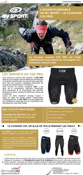 BV Sport a mis en place sa nouvelle version du cuissard, le CSX Pro. Doté de la compression séléctive, le cuissard s’adapte à la morphologie de chacun et respecte ainsi la physiologie des sportifs.