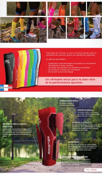 Résultat de 2 années de recherche en collaboration avec le staff de l’équipe de France d’athlétisme et un apport de 5 innovations techniques et scientifiques, les manchons BOOSTER ELITE apportent une compression/contention progressive unique et prouvée scientifiquement.