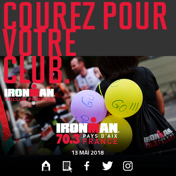 TriClub Podium – S’inscrire, courir, gagner pour remporter. Inscrivez vous à l’IRONMAN 70.3 Pays d’Aix et remportez des points en groupe d’âge pour votre club. Le club avec le plus de points remporte le trophée à l’IRONMAN 70.3 Pays d’Aix.