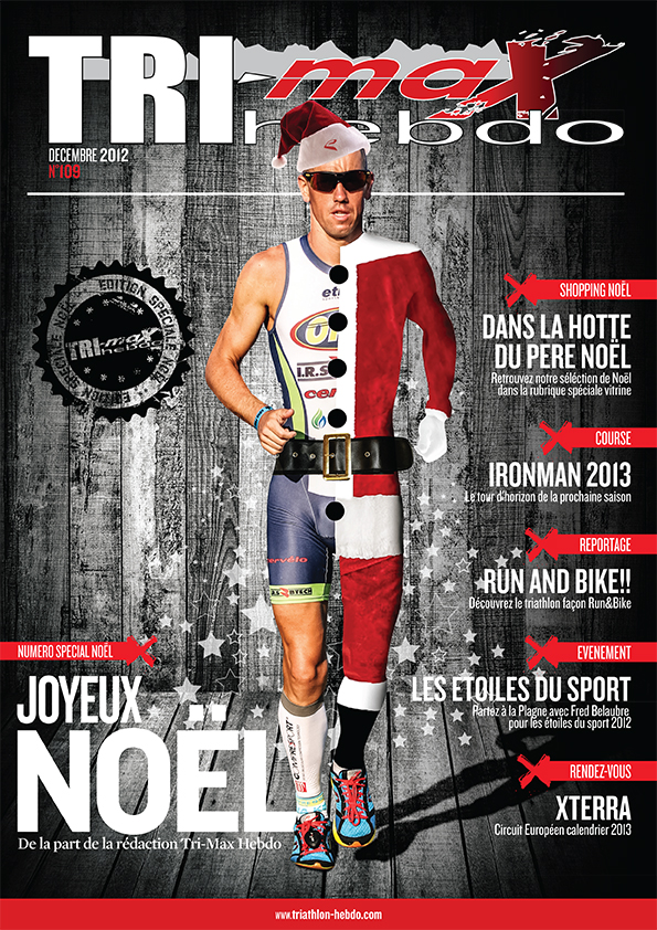 Dans quelques heures le numéro 109… La couv en avant-première Posted by Trimax Hebdo | mercredi 19 décembre 2012 | Actualités | 0 | Plus que quelques heures de patience et le père Noël triathlon-hebdo arrivera avec un peu d’avance en vous offrant son tout dernier numéro de l’année. Et la hotte est pleine de cadeaux pour nos lecteurs… A tout à l’heure…