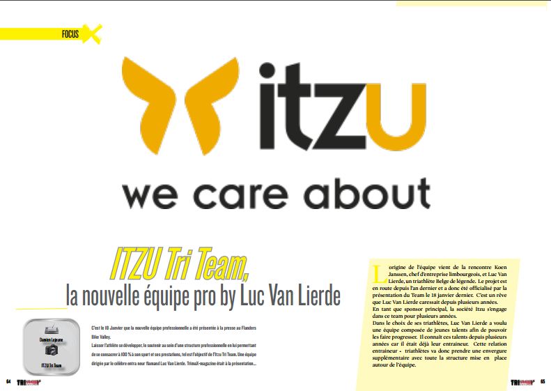 C’est le 18 Janvier que la nouvelle équipe professionnelle a été présentée à la presse au Flanders Bike Valley. Laisser l’athlète se développer, le soutenir au sein d’une structure professionnelle en lui permettant de se consacrer à 100 % à son sport et ses prestations, tel est l’objectif de l’Itzu Tri Team. Une équipe dirigée par le célèbre entraîneur flamand Luc Van Lierde. TrimaX-magazine était à la présentation…