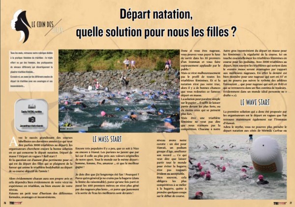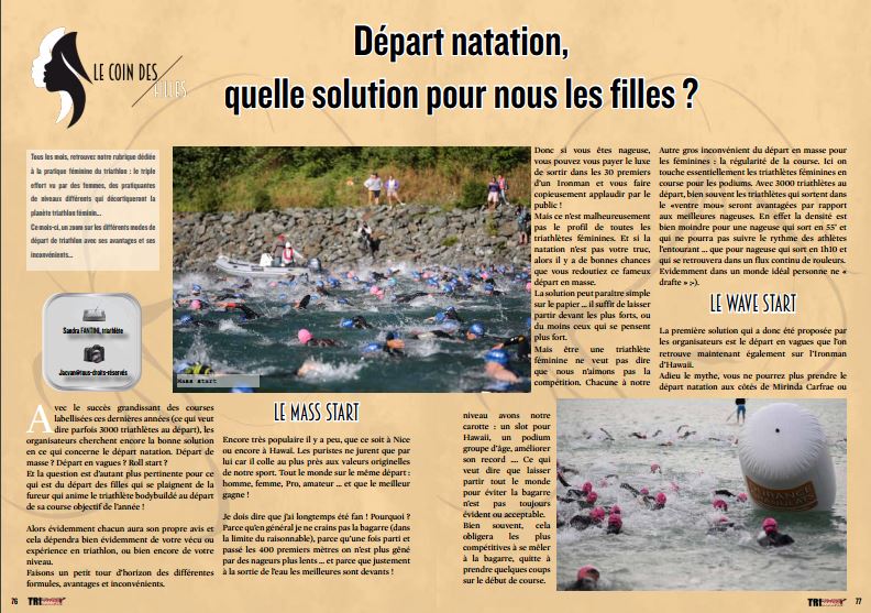 Tous les mois, retrouvez notre rubrique dédiée à la pratique féminine du triathlon : le triple effort vu par des femmes, des pratiquantes de niveaux différents qui décortiqueront la planète triathlon féminin… Ce mois-ci, un zoom sur les différents modes de départ de triathlon avec ses avantages et ses inconvénients…