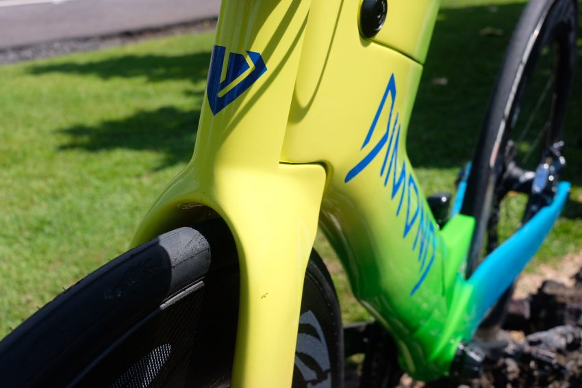 Meme si le look est très similaire, il ne faut pas s’y tromper on est bien loin d’un Zipp 2001 dans la mesure ou la poutre du DIMOND ne présente aucune flexion. Ce cadre nous a d’ailleurs surpris par sa rigidité, largement au niveau des références du marché.
