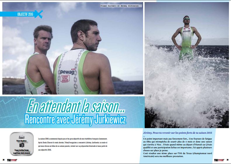 La saison 2016 a commencé depuis peu et les gros objectifs de nos triathlètes français s’annoncent. Après Denis Chevrot le mois dernier, TrimaX-magazine a rencontré Jérémy Jurkiewicz ce mois-ci qui nous dresse un bilan de sa saison passée, revient sur sa préparation hivernale et nous parle de ses objectifs 2016.